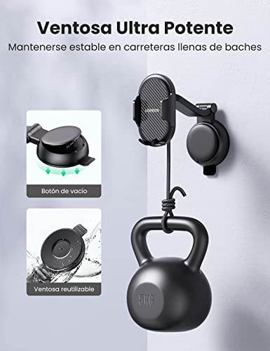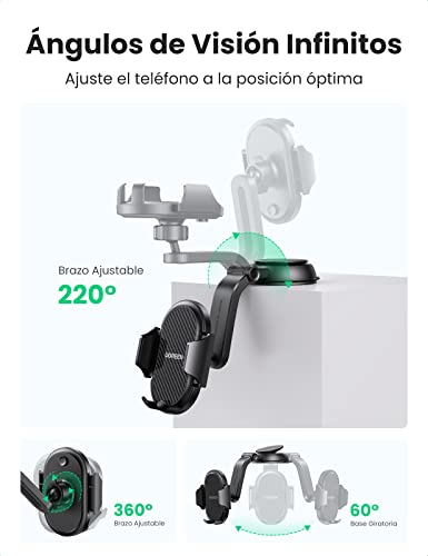UGREEN Soporte Movil Coche, Soporte de Móvil Coche con Ventosa Fuerte para Salpicadero 360°, Sujeta Movil Coche Universal Porta Movil Coche Car Phone Holder Compatible con iPhone 13 12 Pro,Galaxy S21