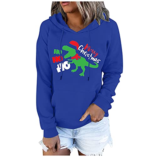 Lomelomme Sudadera con capucha de Navidad Ugly para mujer, sexy, con impresión navideña, camiseta de Navidad, para mujer, color rojo, cuello redondo, camiseta de manga larga, F1 azul., XXX-Large