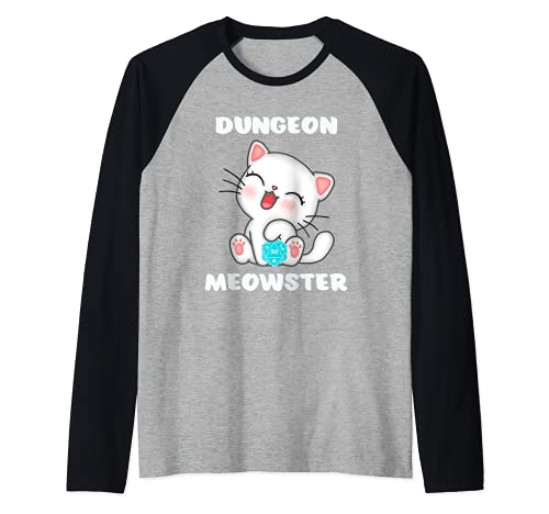 D20 RPG Dragons Mesa Regalo - Dungeon Meowster Master Cat Camiseta Manga Raglan