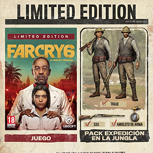 - Far Cry 6 - Limited Edition incluye el juego completo y el contenido digital PACK EXPEDICIÓN EN LA JUNGLA. Adéntrate en la espesura de Yara con estilo gracias al pack Expedición en la jungla, que incluye el traje Expedición en la jungla, el arma SBS y el amuleto de arma Brújula.