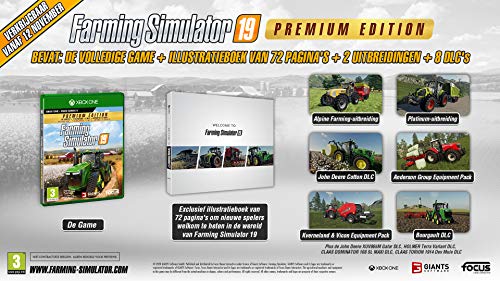 - La Premium Edition incluye el juego millonario en ventas Farming Simulator 19 y los siguientes contenidos: Alpine Farming Expansion; kverneland & Vicon Equipment Pack; bourgault DLC; platinum Expansion; john Deere Cotton DLC; anderson Group Equipment Pack; john Deere XUV865M Gator DLC; hOLMER Terra Variant DLC; cLAAS DOMINATOR 108 SL MAXI DLC; cLAAS TORION 1914 Dev Mule DLC