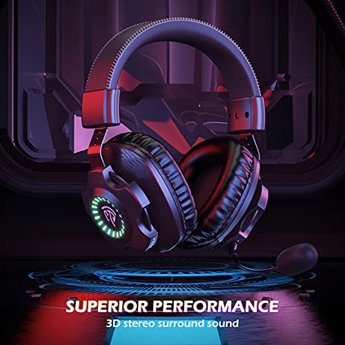 Pacrate Auriculares Gaming PS4, Auriculares con Micrófono PC, Auriculares Gamer con Cable para Xbox One Nintendo Switch con Cancelación de Ruido, Cascos con 3.5mm Jack con Sonido Envolvente & Luz LED