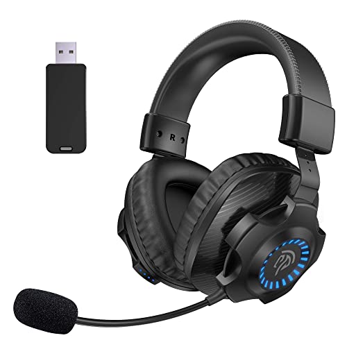 EasySMX 7.1 Auriculares Gaming Inalámbrico PS4 PS5, [Regalo Navidad] 2.4G Cascos Gaming Inalámbrico 7.1 Sonido Estéreo con RGB Luz, Micrófono, Ajuste de Volumen de PC, Mac, PS5 y PS4, Headset Wireless
