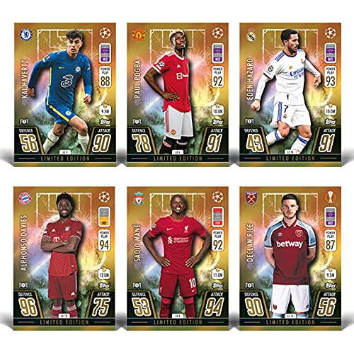 - ¡2 cartas/cromos de edición limitada al azar - Puede encontrar las de Luka Modric, Jadon Sancho, Trent Alexander-Arnold, Leon Goretzka, Giorgio Chiellini y Gianluigi Donnarumma!