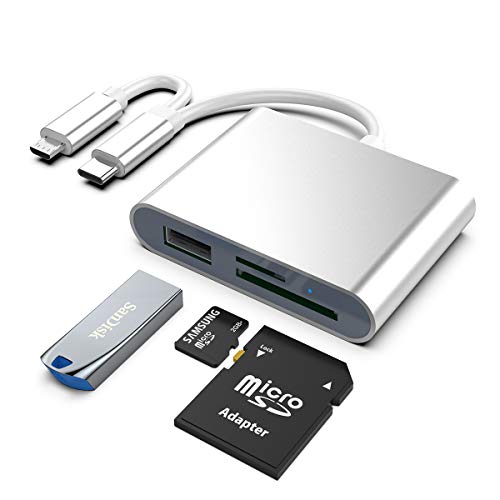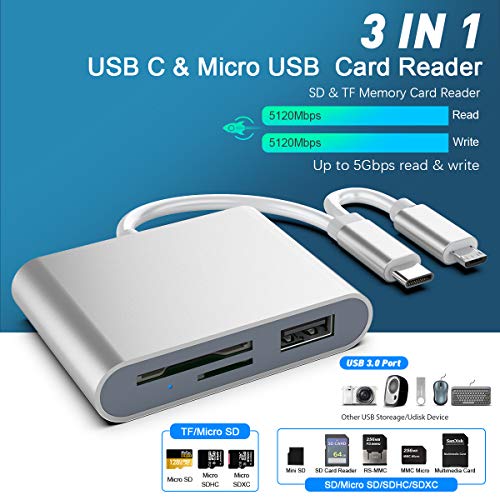 Eletrand Tipo C + Micro USB a SD y TF Adaptador de lector de tarjetas de memoria para teléfonos inteligentes Android,cámara,computadora portátil,tableta,compatible con Windows/Mac OS/Linux,plateado