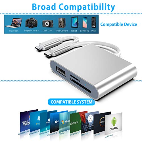 - 【Diseño de interfaz doble tipo C y micro USB】 El lector de tarjetas de memoria SD y TF es adecuado para todo tipo de dispositivos con interfaces tipo C y micro USB. Y es compatible con Windows XP / Vista / 7/8 / 8.1 / 10, Mac OS, Linux, Chrome OS, etc.