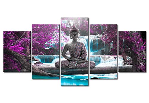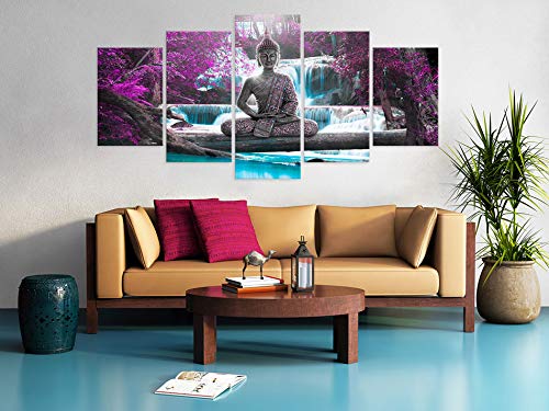 murando Cuadro en Lienzo Buda 200x100 cm Impresión de 5 Piezas Material Tejido no Tejido Impresión Artística Imagen Gráfica Decoracion de Pared Oriente Zen Cascada c-A-0021-b-o