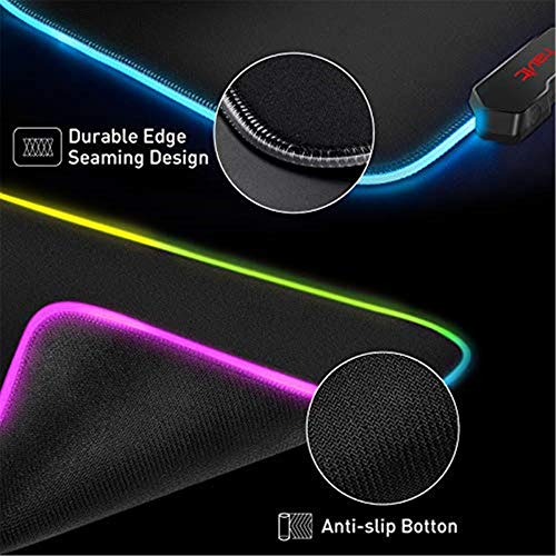 - Duradera e impermeable, fácil de limpiar: diseñada con materiales de primera calidad con un borde cosido reforzado, nuestra alfombrilla de ratón RGB es muy duradera y no se deshilacha ni se despega. Es perfectamente impermeable, no se preocupe por derramar líquido en la alfombrilla del mouse para juegos, la alfombrilla es muy fácil de limpiar sin problemas (un movimiento de la mano es suficiente).