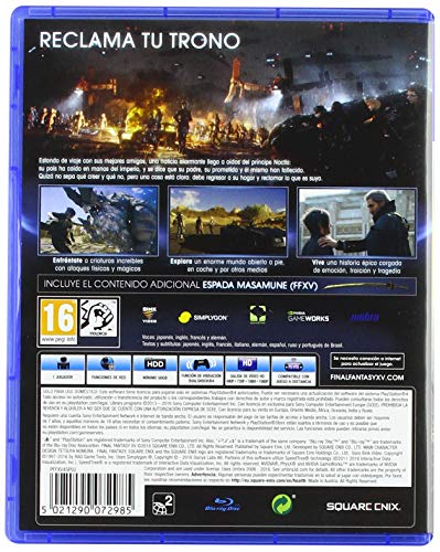 - FINAL FANTASY XV Day One Edition incluye: El disco del juego FINAL FANTASY XV + Contenido descargable adicional: Espada Masamune (FFXV). Haz silbar la hoja de la mítica Masamune con letales espadazos durante tu aventura.