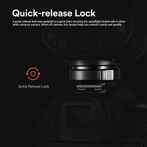 - ? 【Funciones mejoradas】: Godox V860III-S Se agregó una luz de modelado en la parte delantera para ayudar a la visualización previa y se mezcla con la luz ambiental, con brillo regulable en 10 niveles; Recientemente se agregó un botón rápido en el lateral para cambiar rápidamente del modo manual al modo TTL; Se actualizó un bloqueo de liberación rápida a una palanca rápida para bloquear el flash en su lugar en la zapata de la cámara.