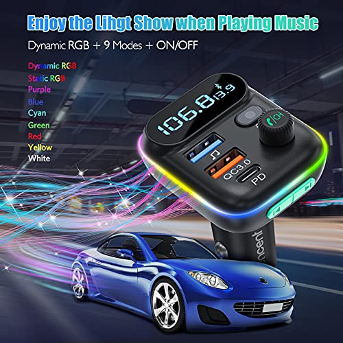 - 【 Diseño de 9 Colores LED 】- El transmisor FM para automóvil está diseñado con 9 luces LED de color: rojo, azul, verde, amarillo, violeta, cian, blanco, arco iris, arco iris de flujo. Entonces verá el botón claro en la oscuridad y ajustará el color que desee. Facilite la operación y la conducción más segura cuando conduzca de noche.