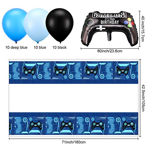- El paquete incluye: recibirás 1 telón de fondo (5,9 x 3,7 pies), 30 globos de látex (azul oscuro, negro, azul), 1 cubierta de mesa de videojuegos, 2 globos de papel de aluminio con controlador de videojuegos, colores ricos y diversos los estilos hacen que la decoración sea más abundante