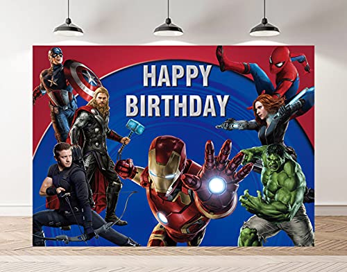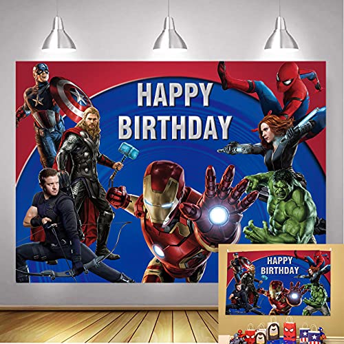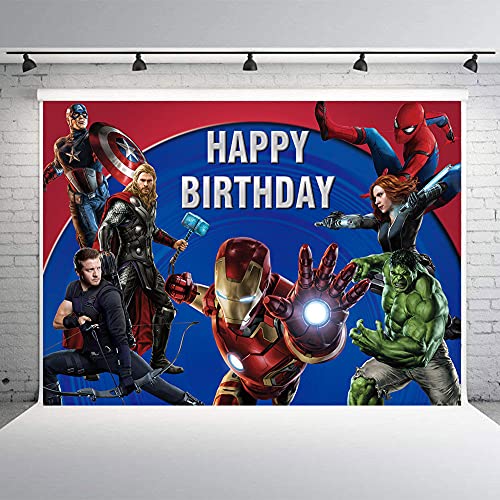 Fondo de superhéroe de Marvel de los Vengadores para niños, tema de superhéroes, suministros de decoración de fiesta de cumpleaños para fotografías, accesorios de estudio (2,1 m x 1,5 m)