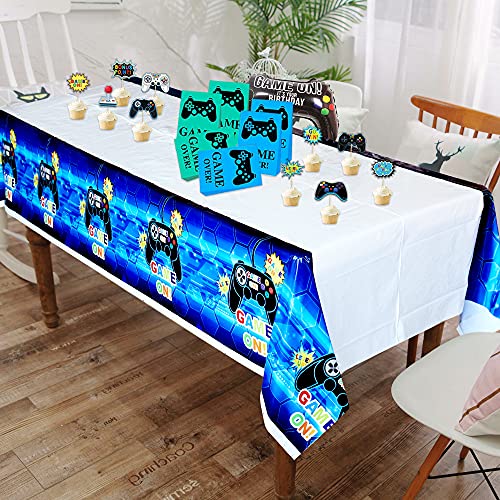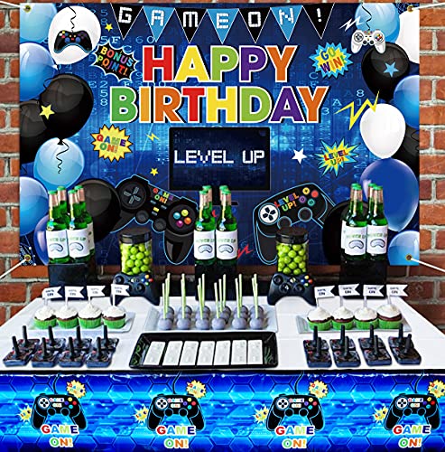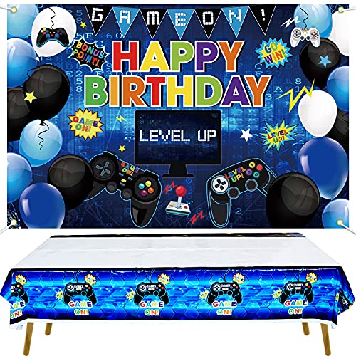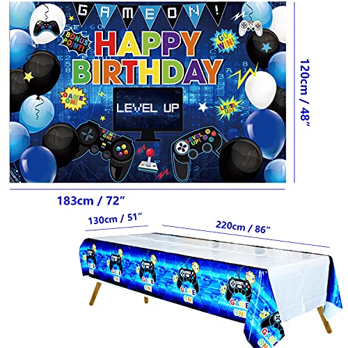 KEFAN Fondo de Fiesta de cumpleaños de Videojuegos y Paquete de Cubierta de Mesa, Juego de Feliz cumpleaños en el Fondo, Cubierta de Mesa de plástico con Tema de Juegos (Azul)