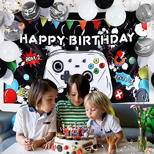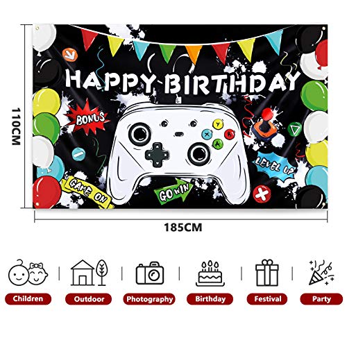 - [APTO PARA TODAS LAS OCASIONES] El tema de fiesta de cumpleaños de videojuego es apropiado para fiestas de amigos, vacaciones u otros temas relativos con juegos. Se puede utilizar como fondo para tomar fotos, lo que traerá diferente experiencia y diversión para la fiesta cuidadosamente preparada.
