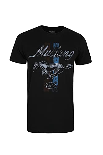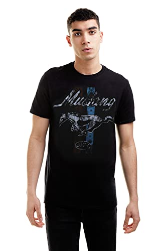 Ford Mustang Stripes Camiseta, Negro, Pequeña para Hombre