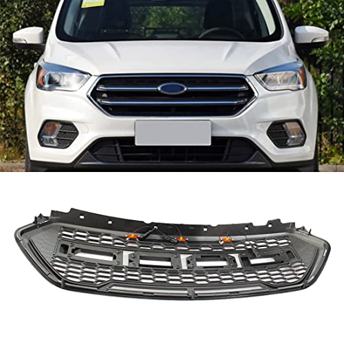 HZYCKJ Rejillas frontales de radiador Para Ford Escape Kuga 2017-2019 Parrilla del parachoques delantero Racing Parrilla superior Parrilla LED Raptor Estilo deportivo con malla de panal Color gris