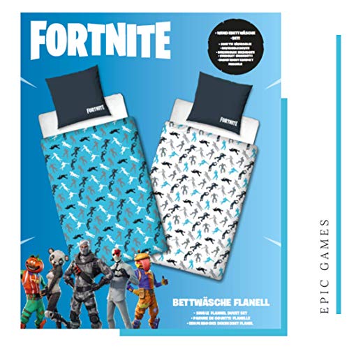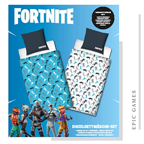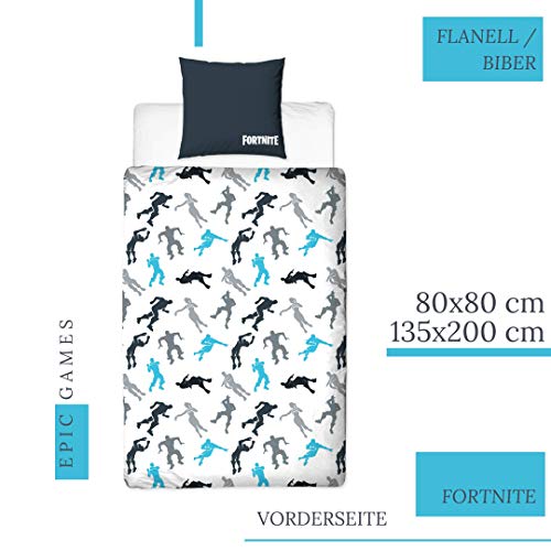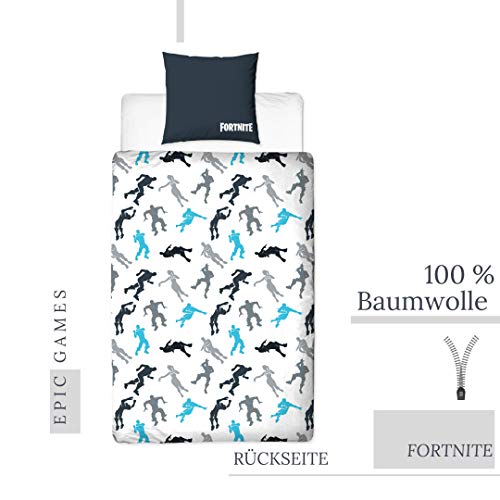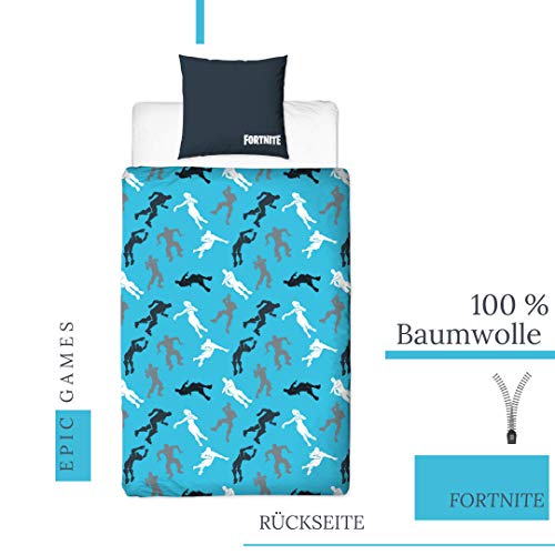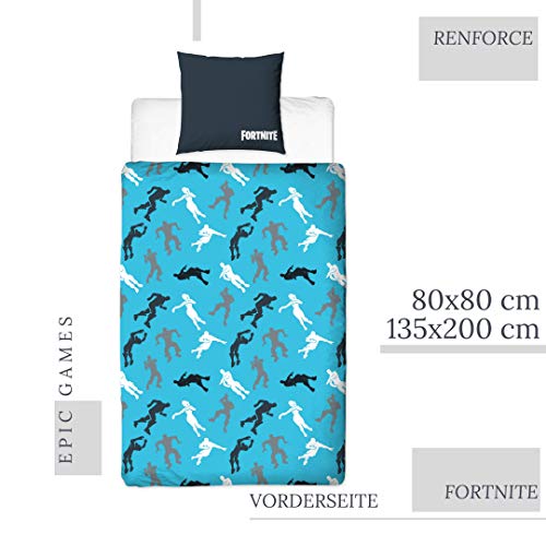 Character World Ropa de cama Fortnite 135 x 200 cm + 80 x 80 cm tamaño alemán · ForTNITE DABS Dance Figuras · 100% algodón · 2 piezas adolescentes jóvenes ropa de cama