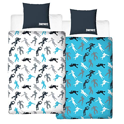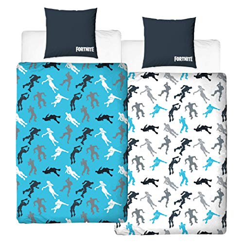 Character World Juego de cama Fortnite de 135 x 200 cm y 80 x 80 cm de franela/franela de algodón Fortnite DABS, figuras de danza, 100 % algodón, para adolescentes y jóvenes