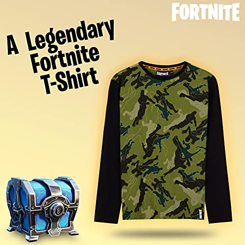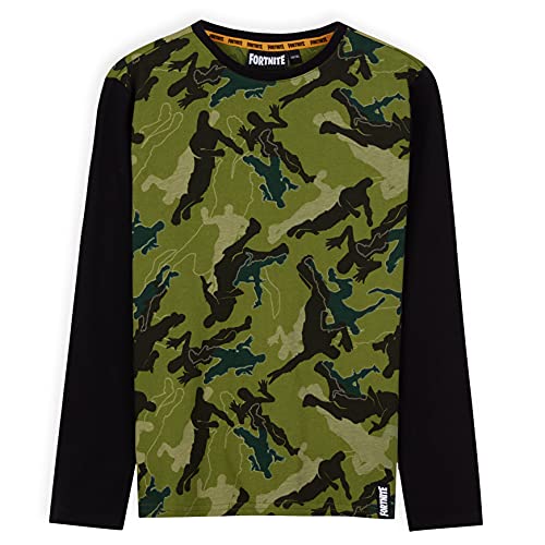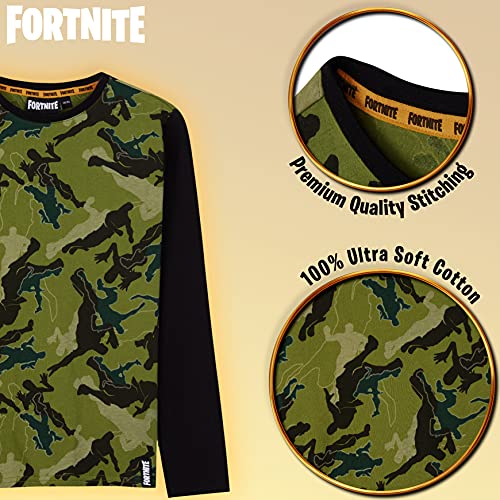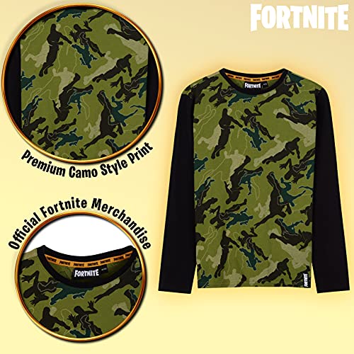 Fortnite Camisetas Niño De Manga Larga, Ropa para Gamers De Algodón con Originales Estampados, Regalos para Niños y Adolescentes 7-14 Años (Camo Negro, 9-10 años)