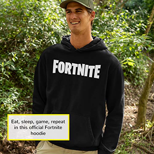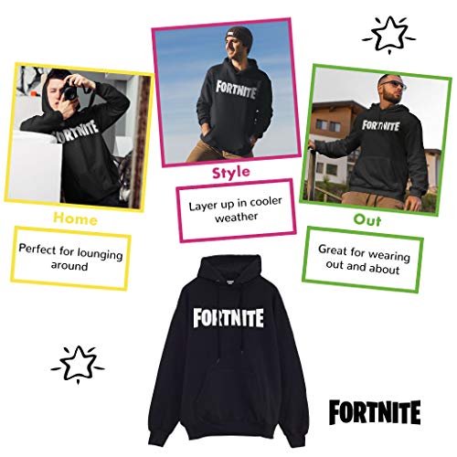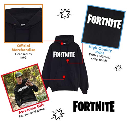 Fortnite Logotipo del Texto Hombres Sudadera con Capucha suéter Negro S | Interruptor Xbox PS4 PS5 para Hombre Camisa con Capucha, Idea Gamer Regalo de cumpleaños para los individuos