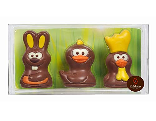 Estuche para figuras de Pascua de De Schutter en chocolate con leche: conejo, pollito, gallo - 54 gramos en total