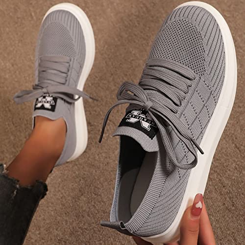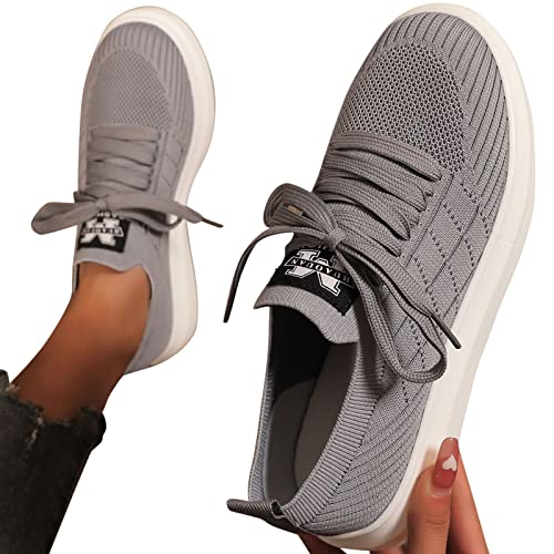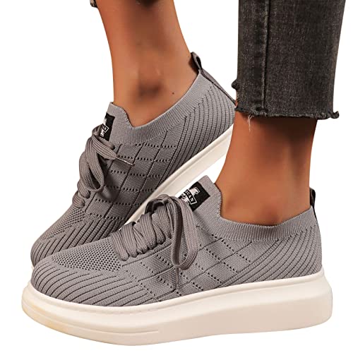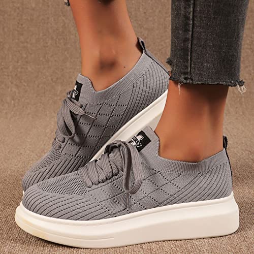 NYYY Zapatillas de punto Flying Strick para mujer, con plataforma grande, para el tiempo libre, para correr, gris, 40 EU