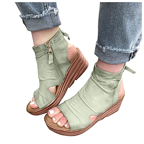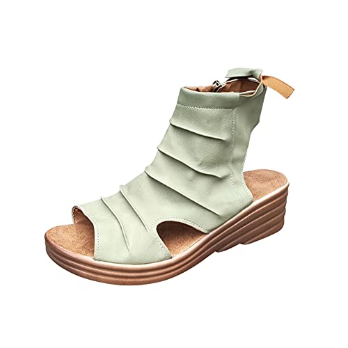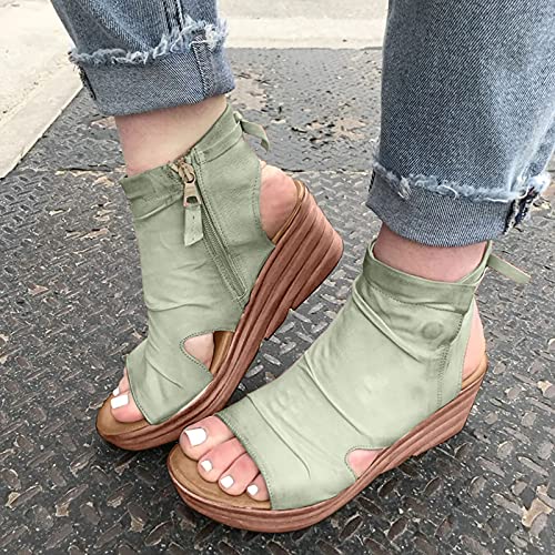 URIBAKY - Sandalias para mujer, color liso, con plataforma informal y con tacón de cuña, sandalias de boca de pescado, elegantes, cómodas, planas, de playa, Verde (verde), 38 EU