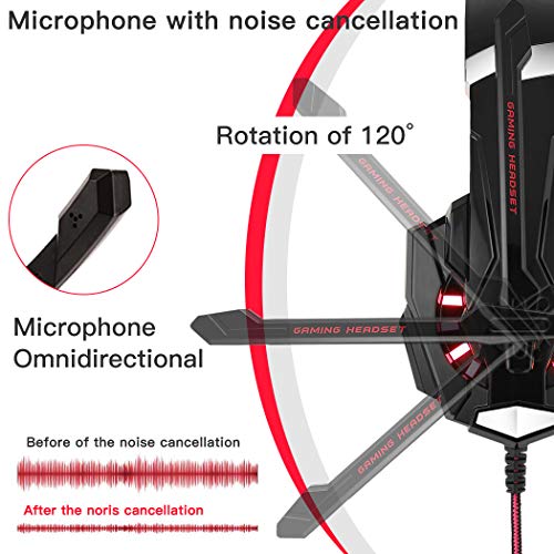 FUNINGEEK Auriculares Gaming PS4,Cascos Gaming de Mac Estéreo con Micrófono Cascos Gaming 3.5mm Jack con Luz LED Bass Surround y Cancelación de Ruido Auriculares Compatible con PC/Xbox One/Switch