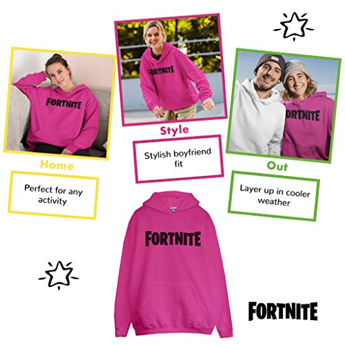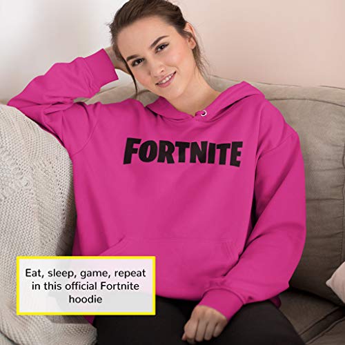 Fortnite Pullover Hoodie for Women, Text Logo Print, Official Merchandise Sudaderas con Capucha Modernas, Rosa, XXL para Mujer