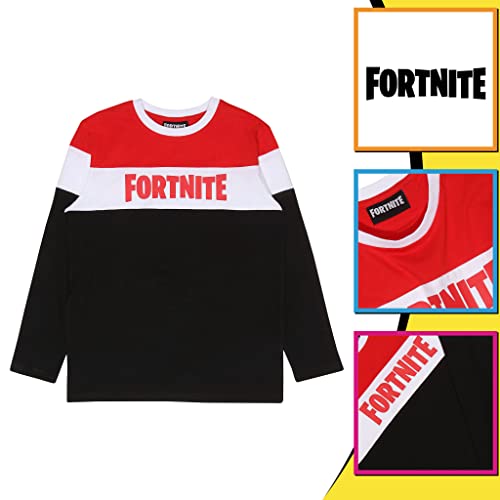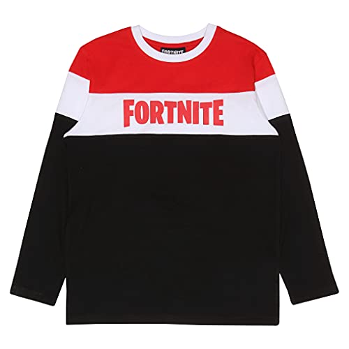 Fortnite Sudadera con cuello redondo para niña con logo de texto | Producto oficial, rojo/negro, 8-9 años