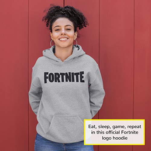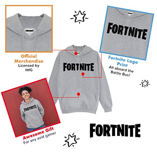 Fortnite Text-Logo Damen Boyfriend Fit Hoodie Heather Grey Sudadera con Capucha, Gris, 4XL para Mujer