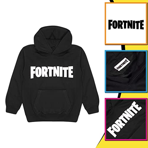 Fortnite Text Logo Girls Pullover Hoodie Black Sudaderas con Capucha a la Moda, Negro, 13-14 años para Niñas