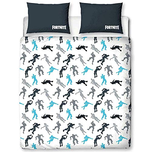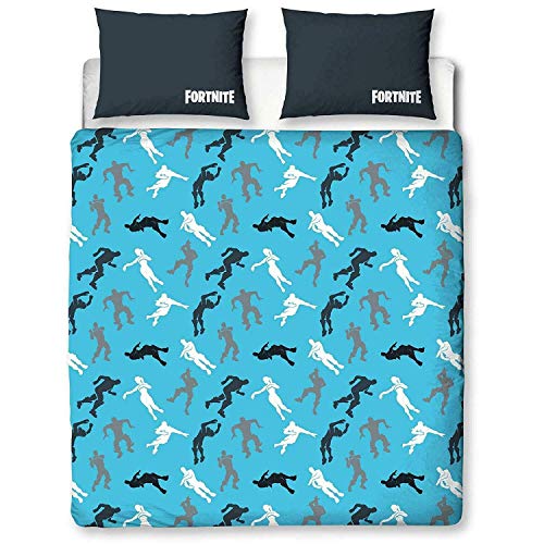 - FORTNITE Diseño de adorno: todos los movimientos favoritos están aquí con este edredón doble oficial de Fortnite. Con tus emotes favoritos en un patrón repetitivo, este edredón Fortnite es el complemento perfecto para el dormitorio de cualquier fanático de Fortnite. Reversible, lo que significa que obtienes 2 grandes diseños en uno