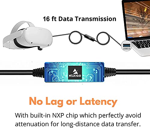NexiGo Cable de Enlace Oculus de 16 pies con Amplificador de Señal, USB 3.2 Gen1 tipo C a A, Compatible con Quest 1 y 2 Auriculares para PC de Juegos