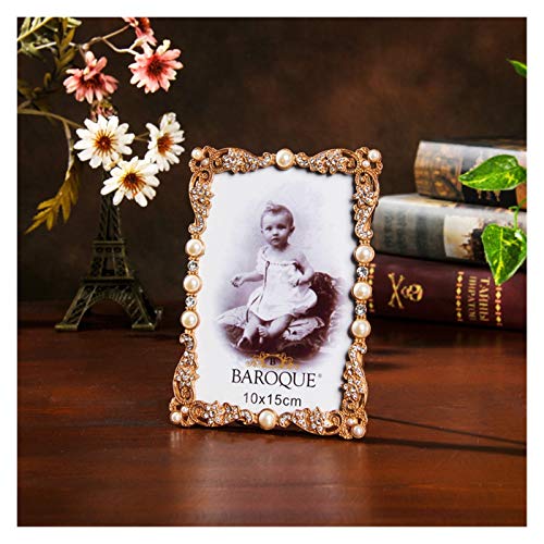 XIALITR Marco de la Foto Retro Metal Gema Marco de Fotos Pearl Classic Creative Kids Photo Frame Mostrar Almacenamiento Home Desktop Decoration Picture Frame (Farbe : Orange)