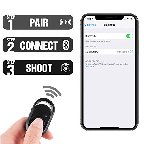 - Fácil de configurar: Sólo encienda sus teléfonos inteligentes Bluetooth, busque el control remoto del obturador y conecte