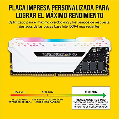 Corsair Vengeance RGB Pro - Kit de Memoria Entusiasta 16 GB (2 x 8 GB), DDR4, 3200 MHz, C16, XMP 2.0, Iluminación LED RGB, Blanco