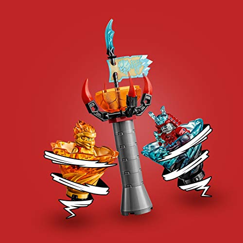 - Este spinner LEGO NINJAGO de juguete se compone de 2 lanzadores construidos con ladrillos y los spinners Tornado de Kai FS y el Samurái Blizzard (novedad en junio de 2019), así como de un pedestal para construir con el Pergamino del Spinjitzu Prohibido