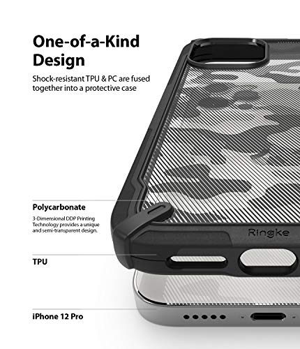 Ringke Fusion-X Compatible con Funda iPhone 12 Pro (2020) / Compatible con Funda iPhone 12 (6,1 Pulgadas), Militar Rigida Carcasa Parachoque TPU Funda Negra - Camo Black (Camuflaje)
