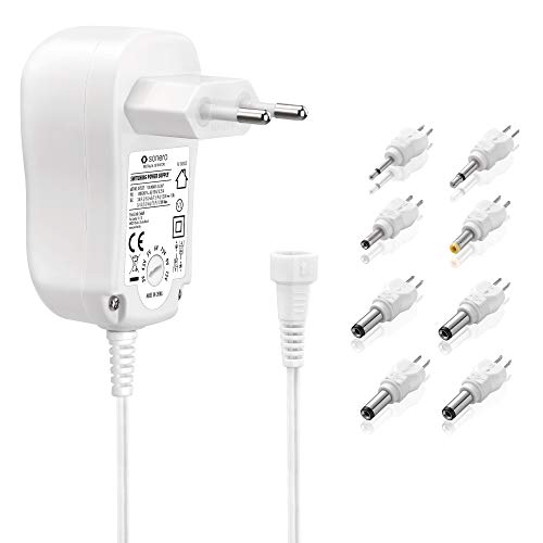 Sonero Fuente de alimentación Universal, Voltaje Ajustable 3V-12V, con 8 adaptadores, máx. 1.000mA, Blanco