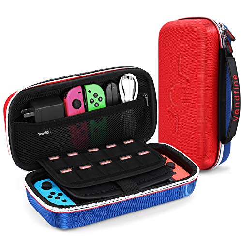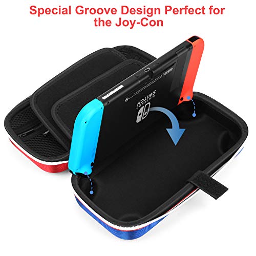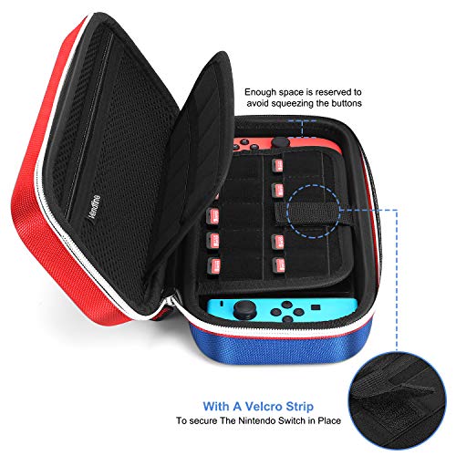 Funda para Nintendo Switch /Switch OLED- Funda de Viaje para Nintendo Switch Console con Más Espacio de Almacenamiento para 19 Juegos, oficial adaptador,Joy-con y otros accesorios Switch(Rojo /azul)