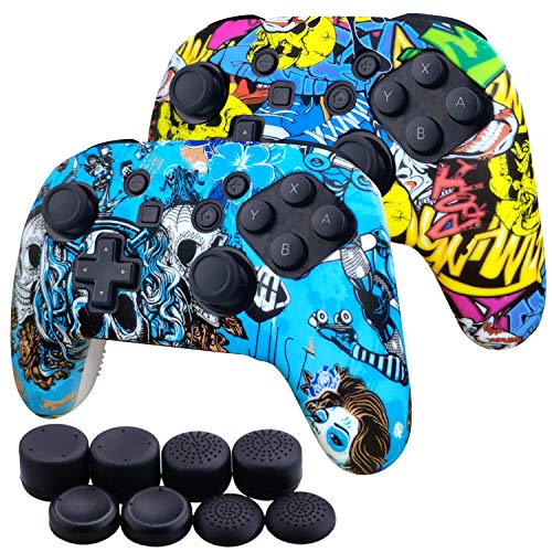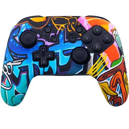 YoRHa Tachonado Impresión de Transferencia Silicona Piel Fundas Cubierta Caso Solo para Oficial de Nintendo Switch Pro Mando x 1 (Graffiti Comico) con Thumb Grip x 8