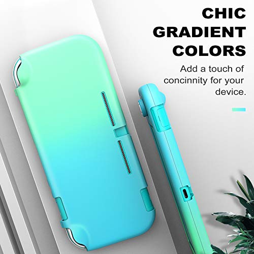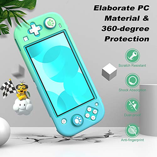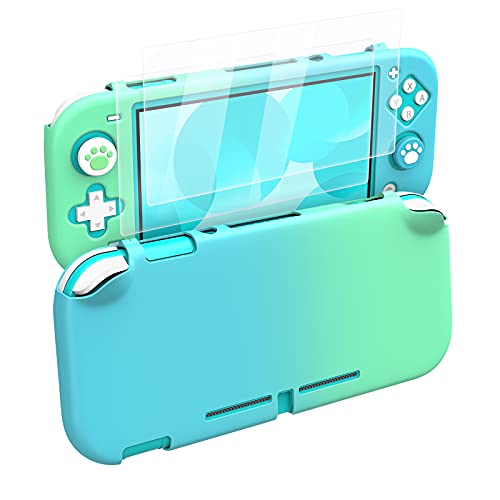 MoKo Funda Compatible con Nintendo Switch Lite, Protectora PC con 4 Tapas de Agarre Pulgar y 2 Protectores Pantalla de Vidrio Templado Transparente HD, Antideslizante, Resistente a Arañazos,Azul+Verde
