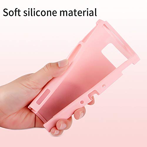 OLDZHU Funda Protectora Compatible con NS Switch,Funda Rosada Delgada y acoplable para Consola NS y Controladores Joy-con,con Protector de Pantalla de Cristal,4Tapas de Agarre para el Pulgar (Rosado)