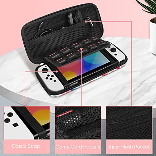 Fintie Funda Portátil Compatible con Nintendo Switch/Switch OLED (2021) - [Antichoque] Estuche Dura para Viaje con 10 Ranuras y Bolsillo Interno para Joy-con, Lluvia de Amor