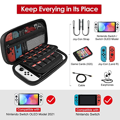 ivoler Funda para Nintendo Switch y Switch OLED, Estuche Dura de Transporte de Lujo, Carcasa Rígida de Viaje para Consola, Adaptador AC, Joy-con Grip, Strap Joy-con, 18 Cartuchos de Juegos y Otros