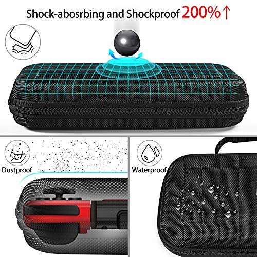 - [Ajuste perfecto y alta calidad] - Bulid con tejido texturizado duradero Cambie la cubierta de EVA y el interior de microfibra suave. La funda de transporte del Switch es eficaz y protege su dispositivo contra rasguños y caídas. Los 8 pequeños bolsillos para tarjetas de juegos y un bolsillo interior separado brindan un espacio de almacenamiento seguro para la Consola de Switch, los cables, el estuche para tarjetas de juegos y otros accesorios más pequeños.