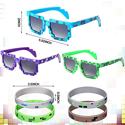 24 Piezas Set de Fiesta de Minero Incluye 12 Pulseras Temáticas Pixeladas y 12 Gafas de Sol de Jugador de Píxeles Gafas Pixeladas de Sol para Niños Adultos Favores de Fiesta de Cumpleaños