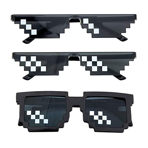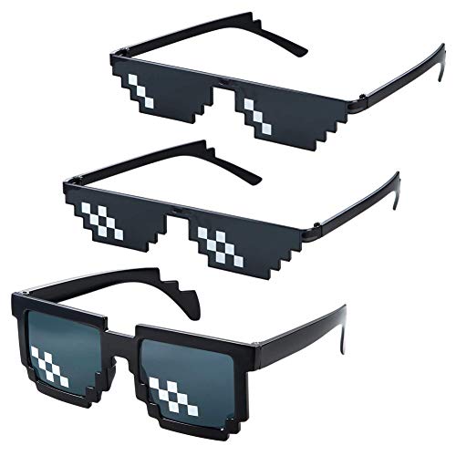 Gafas de Sol Thug Life,3 Pack Gafas Pixeladas Gafas de Mosaico Gafas de Sol MLG 8 Bit Style Gafas para hombres Mujeres Niños Niños Decoración de Fiesta Negro